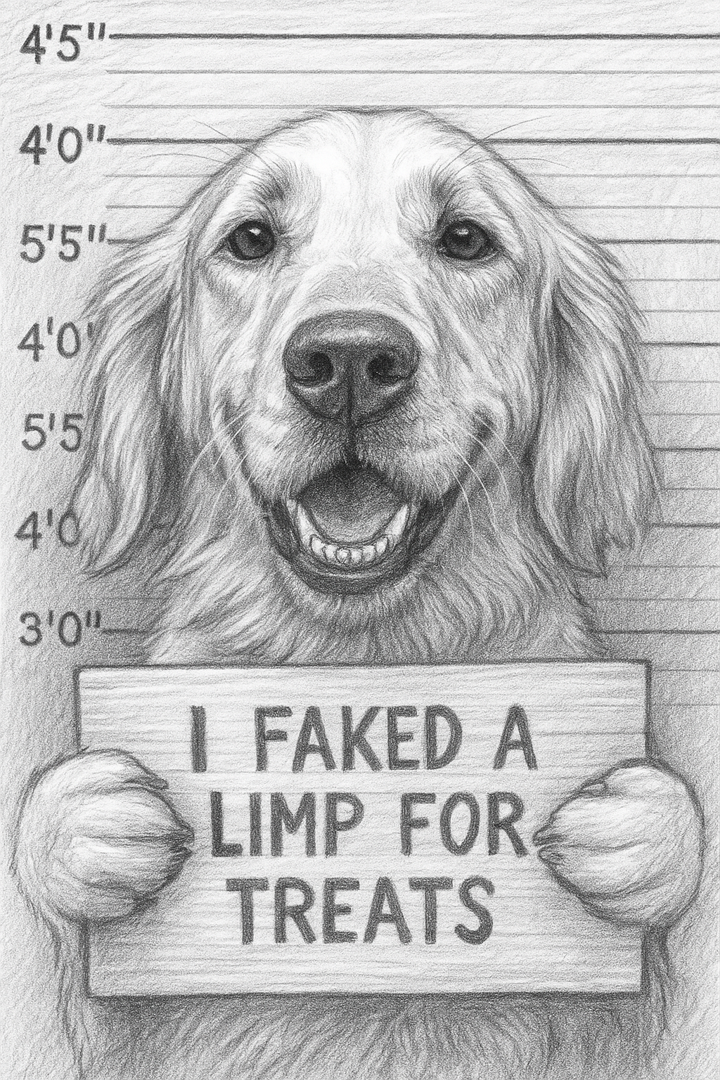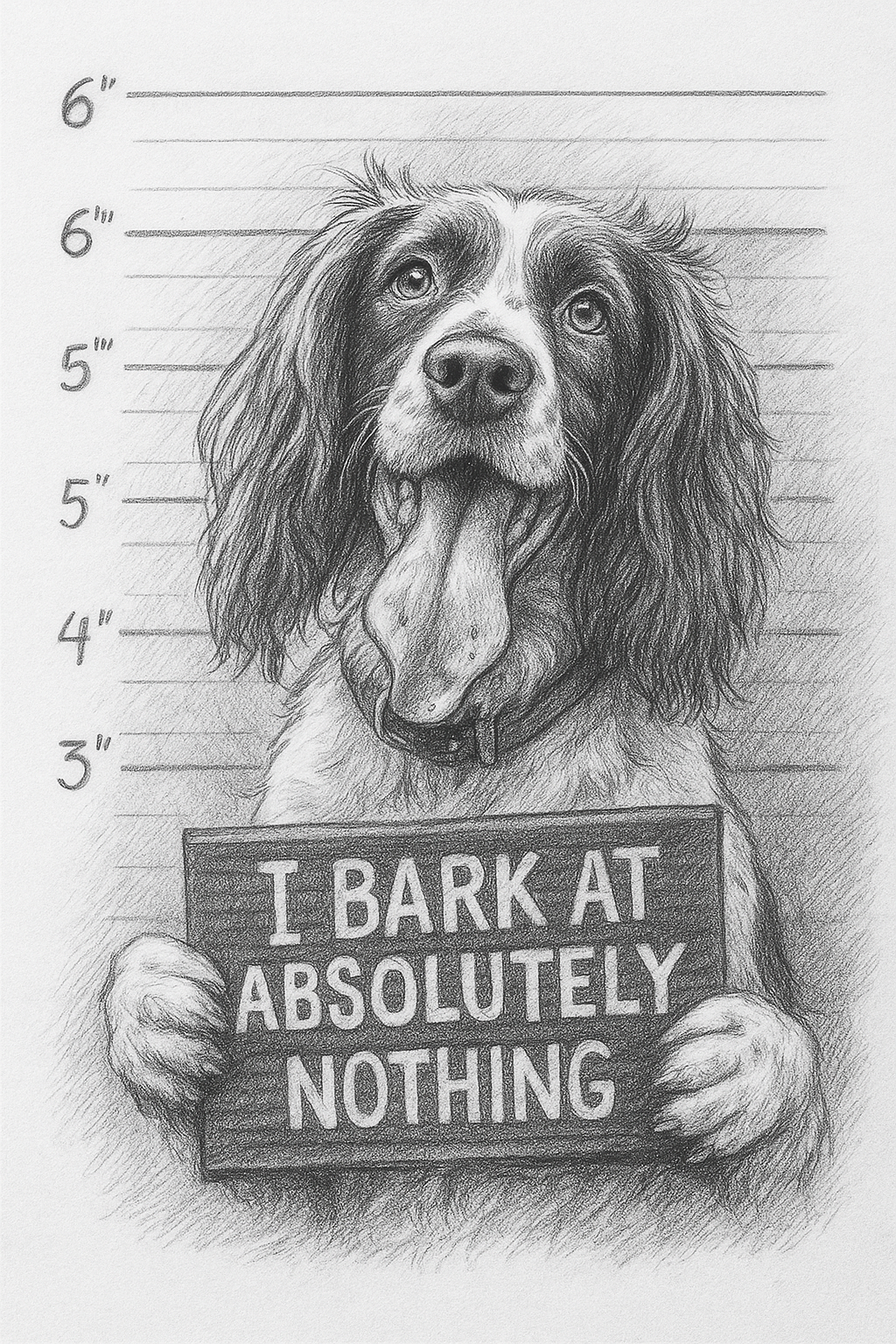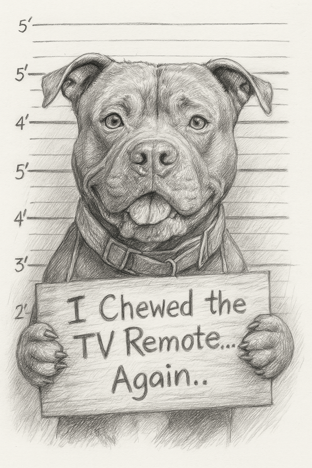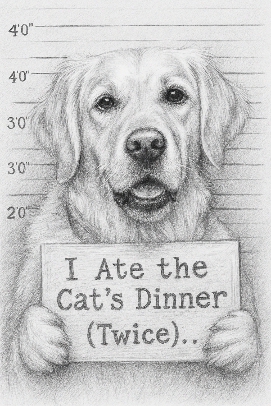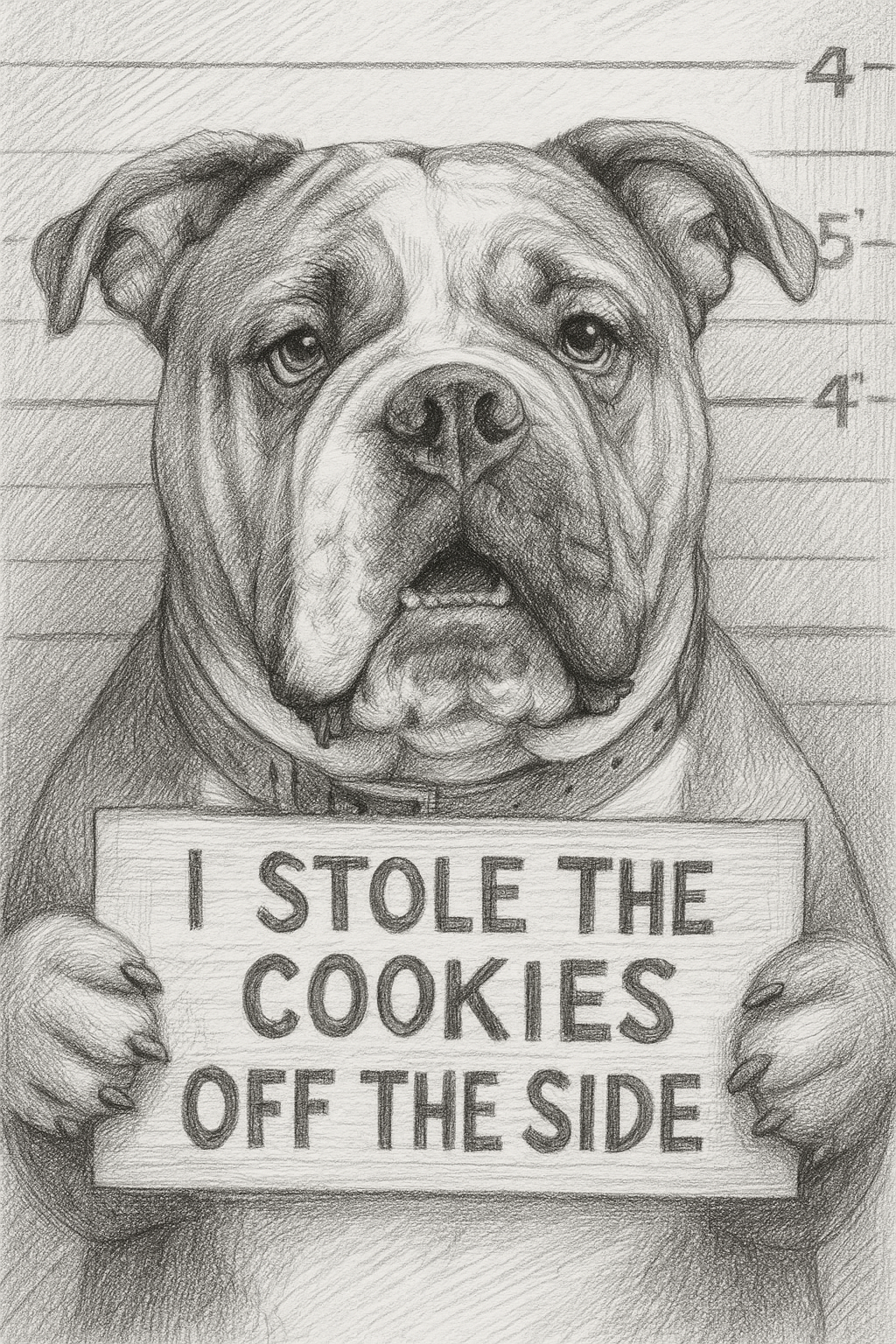 Whether they’re guilty of stealing snacks, chasing the postman, or causing general chaos, this artwork captures their mischievous charm perfectly.
